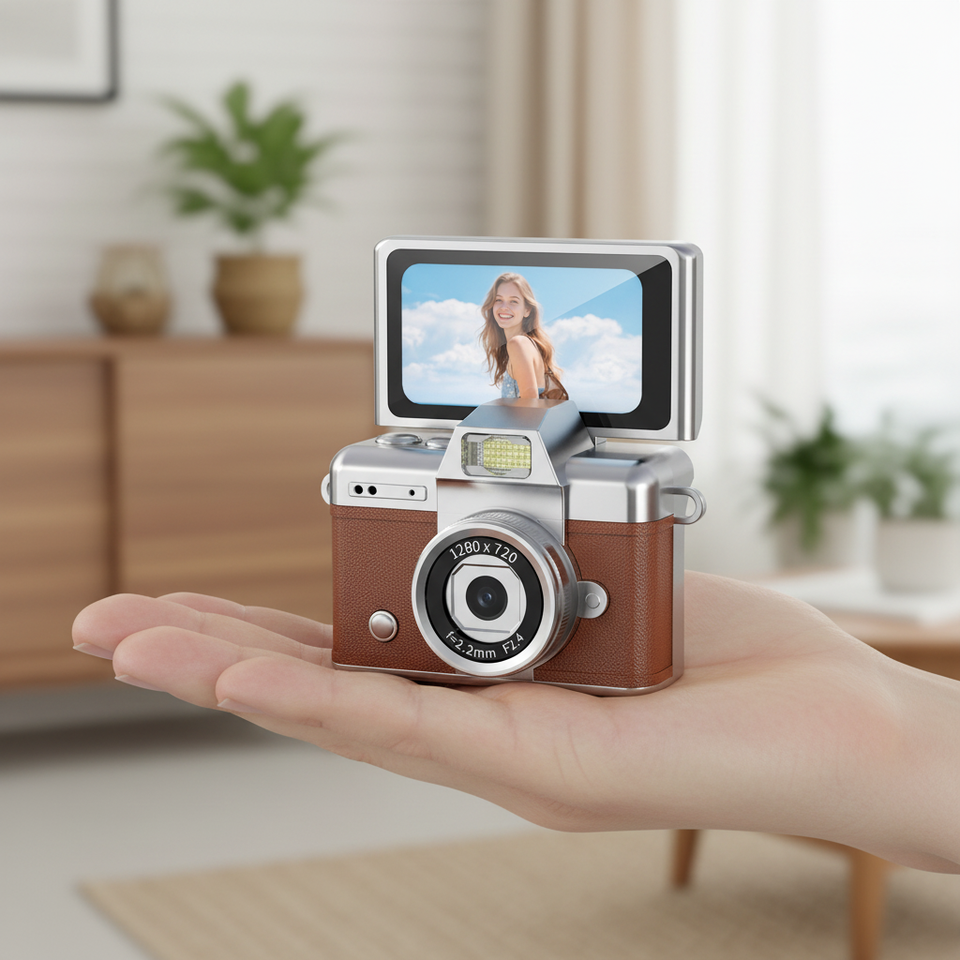 Mini caméra numérique à clapet 720P, caméra vidéo intelligente LK027 avec lampe torche, cadeau d'anniversaire pour enfants