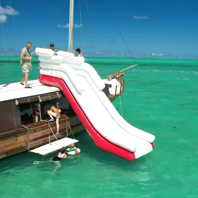 Mini toboggan aquatique flottant, jeux de toboggan gonflable, toboggan de yacht rouge, toboggan gonflable commercial pour bateau
