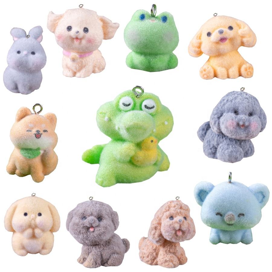 Mini flocage résine animaux breloques pour bricolage porte-clés mignon chien chat lapin porte-clés pendentifs Figurine Miniatures accessoires artisanat
