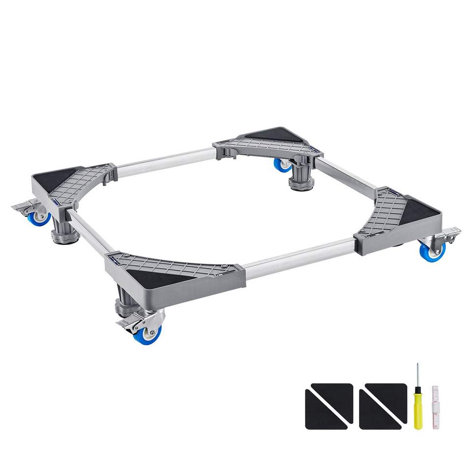 Support pour mini-réfrigérateur, capacité de charge de 400 lb, 4 pieds robustes, 4 roulettes pivotantes verrouillables, piédestal réglable pour lave-linge et sèche-linge
