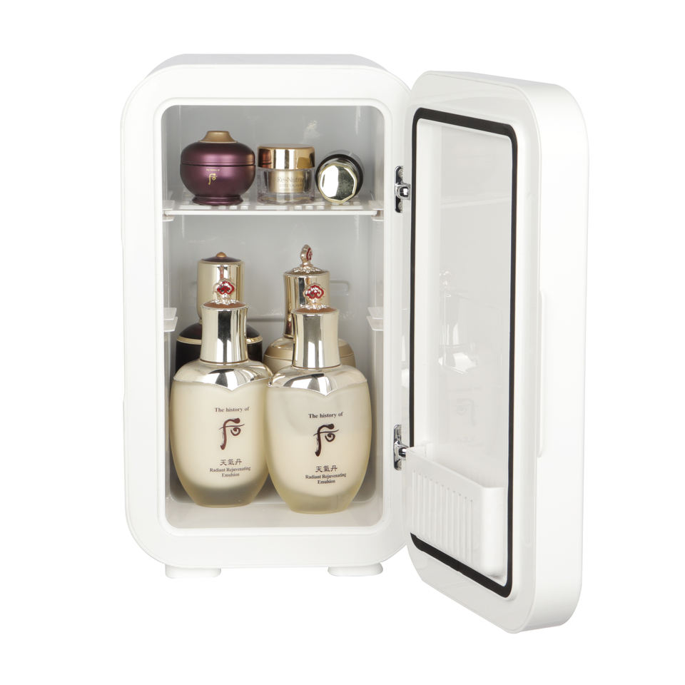 Mini réfrigérateur avec lumière LED 8 canettes Petit réfrigérateur portable pour cosmétiques et soins de la peau Réfrigérateur personnel compact AC DC Soins de beauté