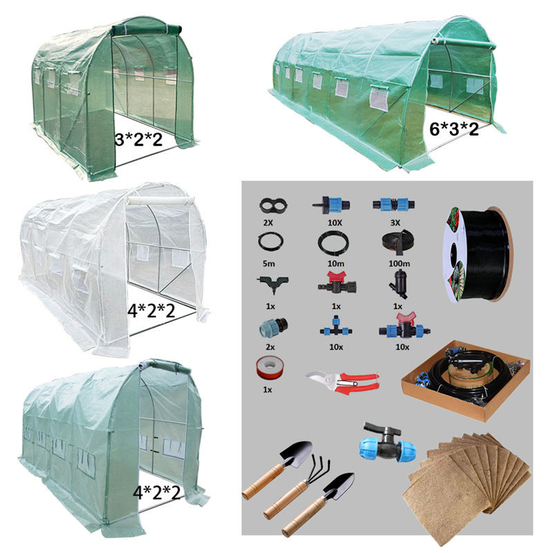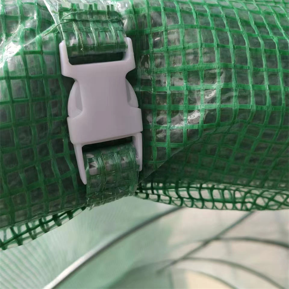 Covering:green PE mesh cloth 140g/m2, 12 windows,1 zipped roll up door