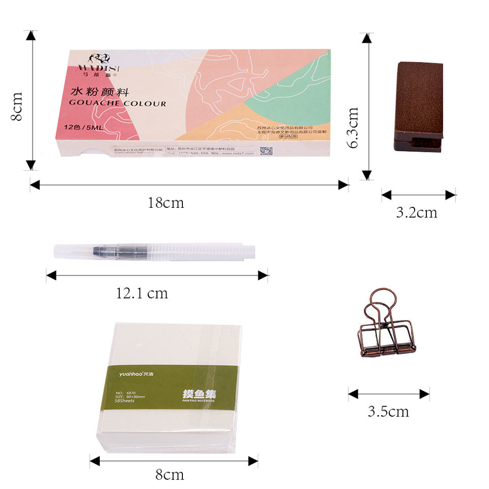 Package Includes:Gouache Pigment+Painting Box+Painting Notebook+Water Pen+Clip