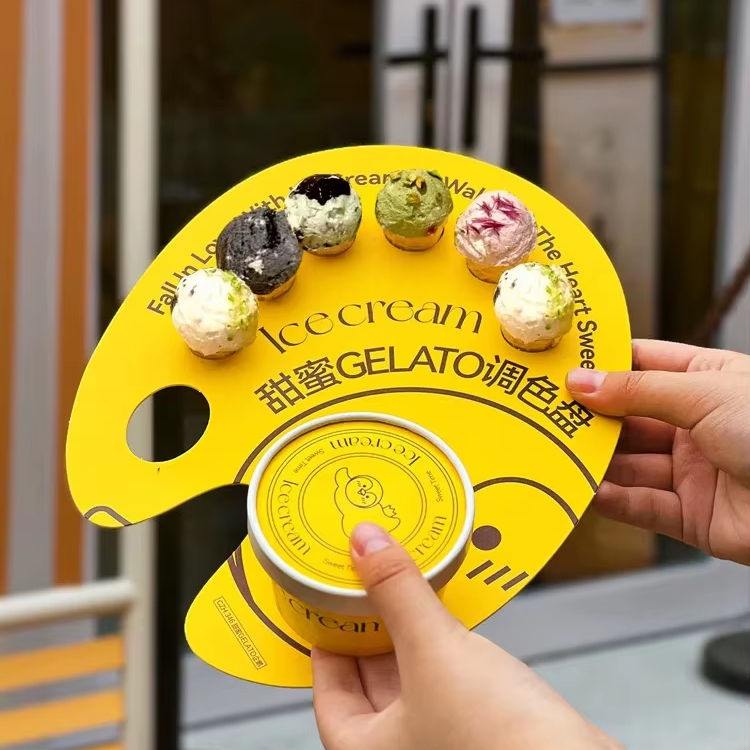 Mini plateau de papier de crème glacée cône croustillant cône de boule de crème glacée palette de carte de papier jetable planche à dessin plateau anti-goutte