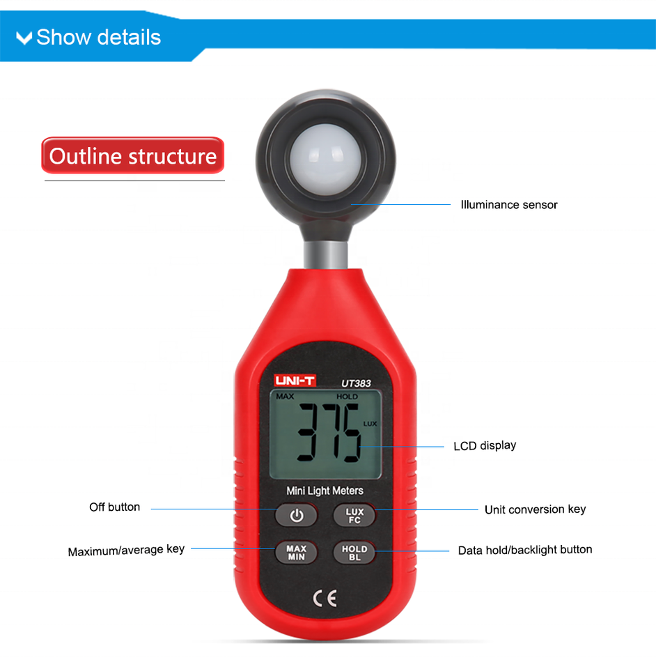Mini Luxmètre UT383, Luxmètre Numérique 200 000 LUX, Luxmètre de Luminance, Test Lux Fc, Max Min Illuminometers, Photomètre