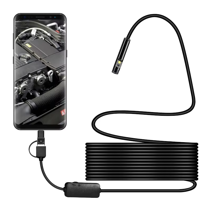 Mini Caméra Endoscope Portable HD 3-en-1 USB 8mm pour Inspection Industrielle, Réparation Automobile et Vidéo d'Inspection de Canalisations