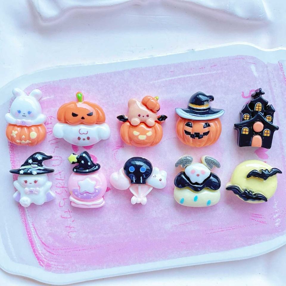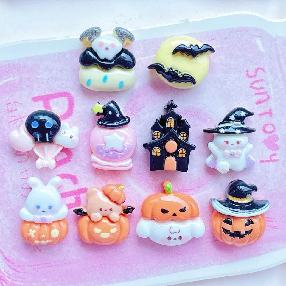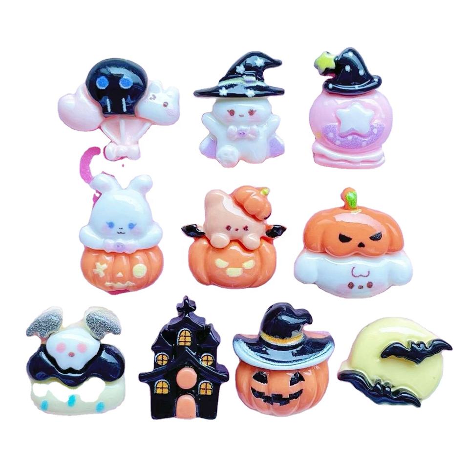 Mini KT chat lapin magique Halloween citrouille château chauve-souris bricolage résine indésirable coque de téléphone chaussure porte-clés pendentif accessoires