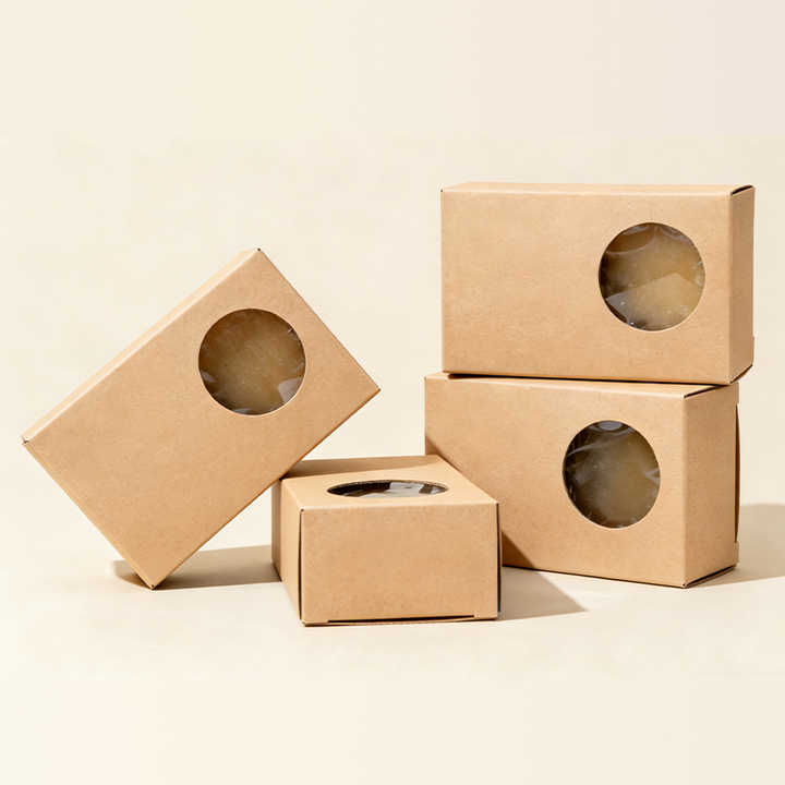 Mini boîtes cadeaux rondes en carton kraft avec fenêtre pour savon artisanal, friandises, pâtisseries, bonbons