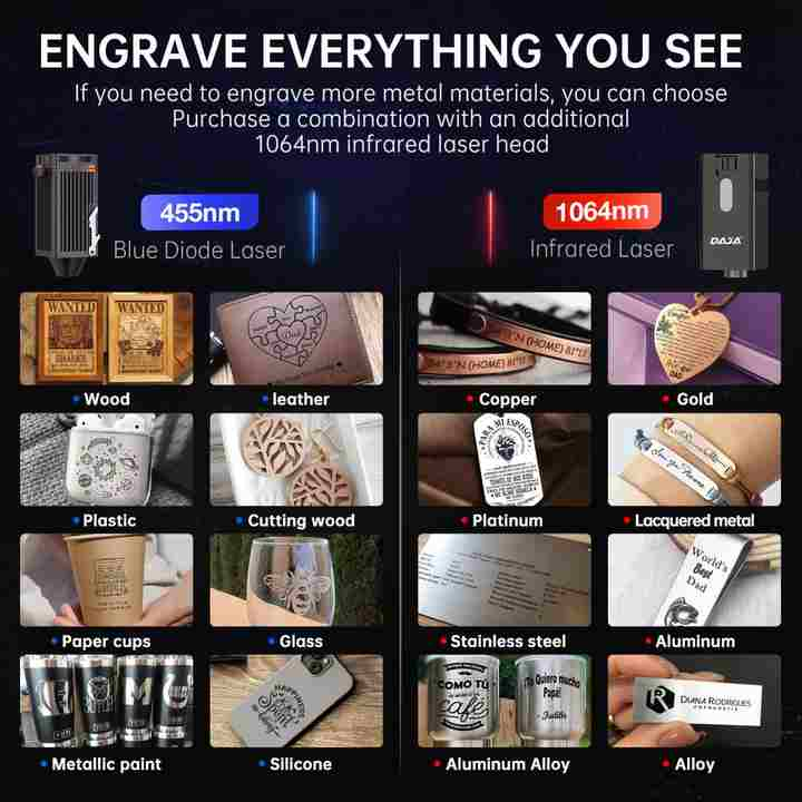 Acier inoxydable, Acrylique, Aluminium, Crytal, Cuivre, Verre, Acier, En cuir, Métal, Papier, Assiette en céramiqueMatériel applicable