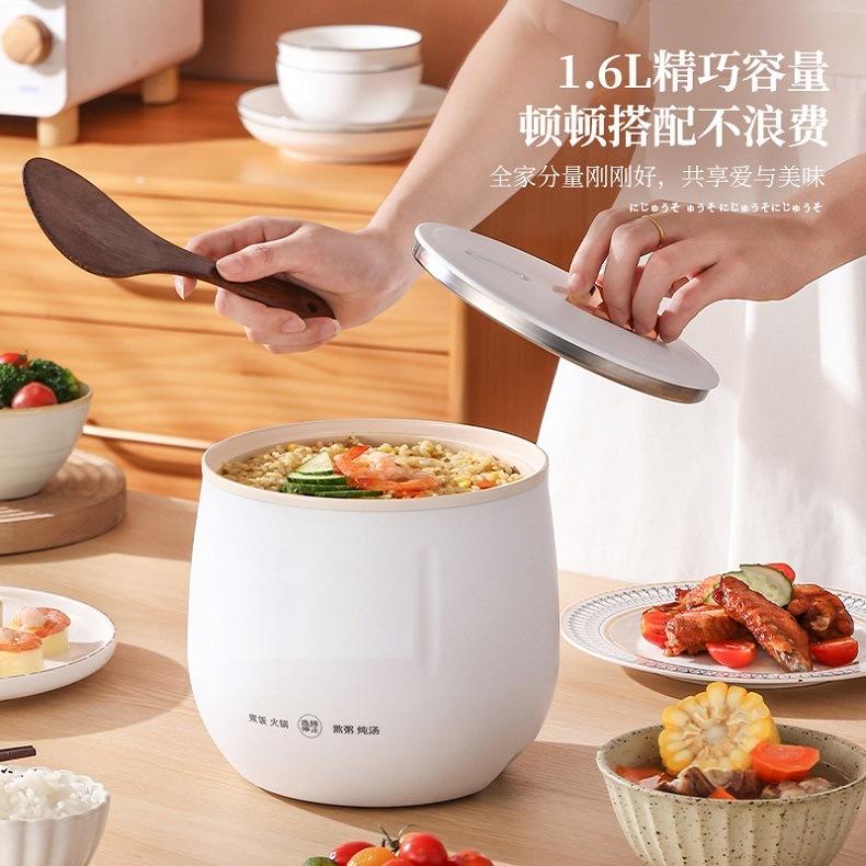 Mini cuiseur à riz multifonctionnel 1,6 L, électrique, blanc ivoire, forme cylindrique, pour la cuisson de bouillies et de soupes