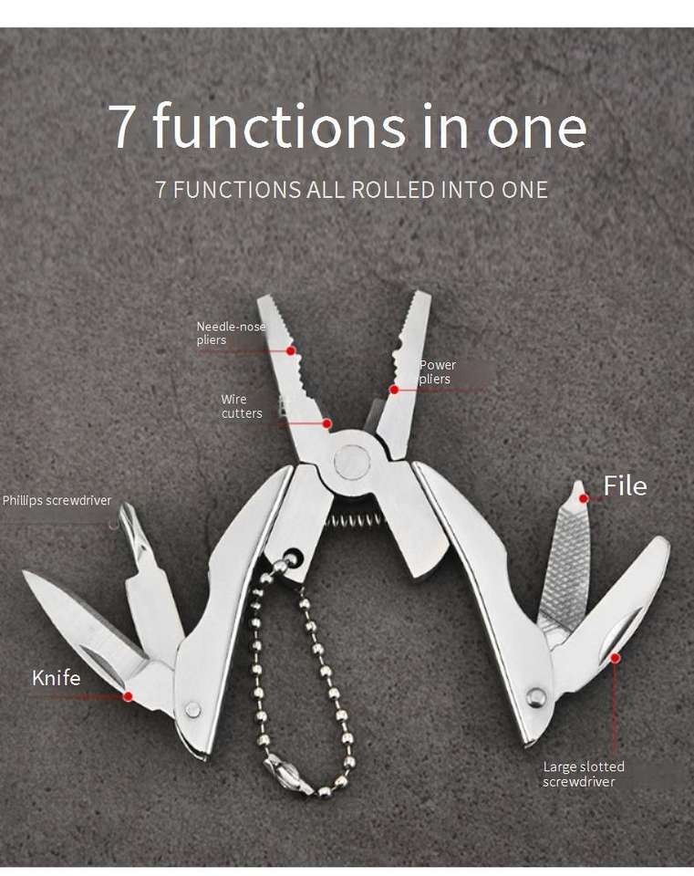 Mini outil multifonctionnel 7 en 1, pinces, tournevis, couteau, outil de poche EDC