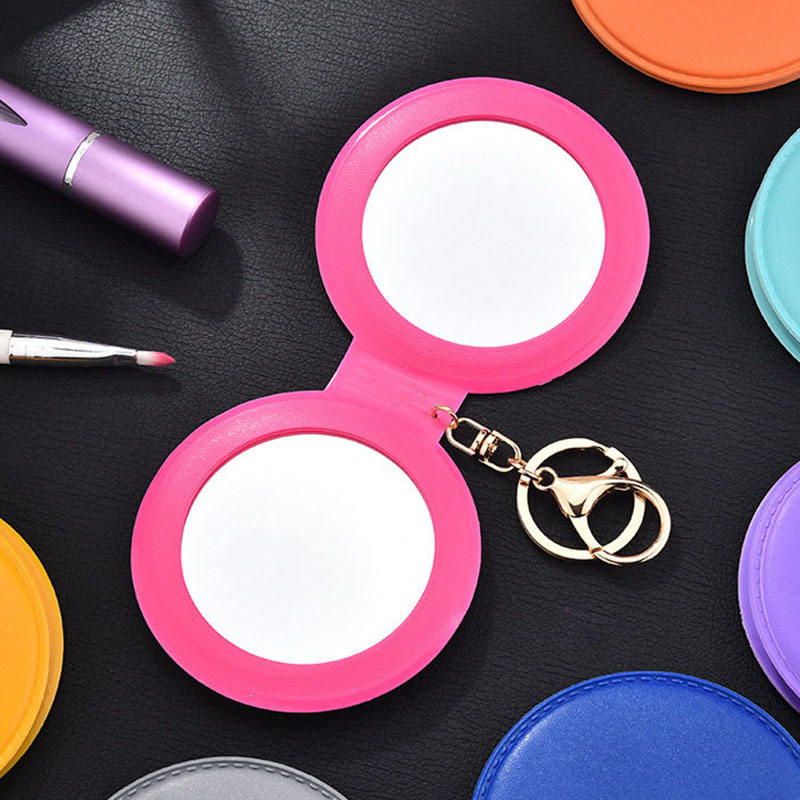 Mini OEM Portable En Cuir Porte-clés Miroir De Maquillage Rond De Poche Beau Miroir Cosmétique Pliable Avec Porte-clés PU Miroir