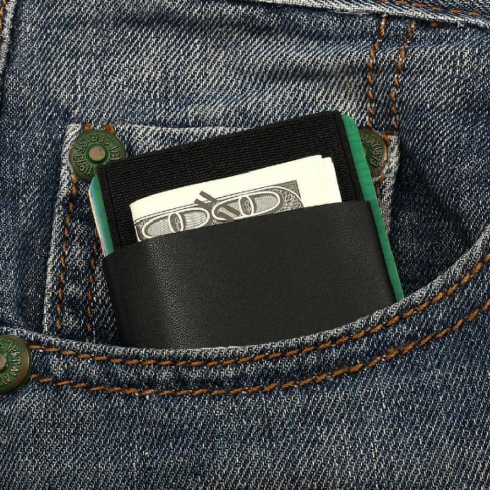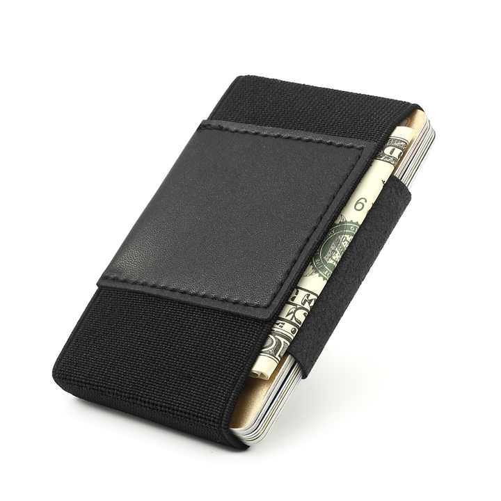 Mini Open Closure Leather Wallet Invisible Pocket Card Holder Ultra-Thin Money Clip Nylon Lining Elastic Stretch Gift Slim Cash