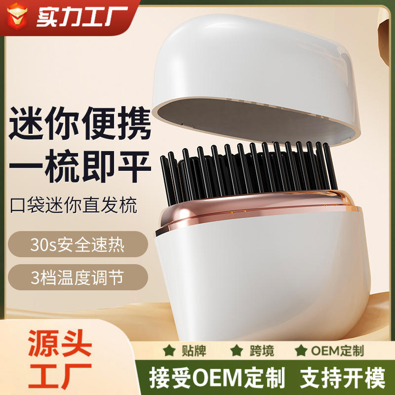 Mini peigne lisseur de poche sans fil portable avec céramique tourmaline pour cheveux secs et humides, massage et coiffage