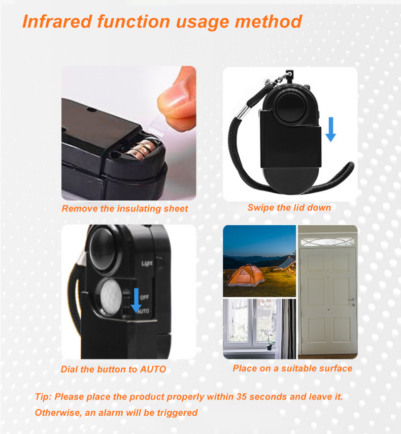 Mini Portable 1PC LED alarme personnelle sans fil 120DB haut décibel avec Induction du corps humain pour la course de nuit d'urgence