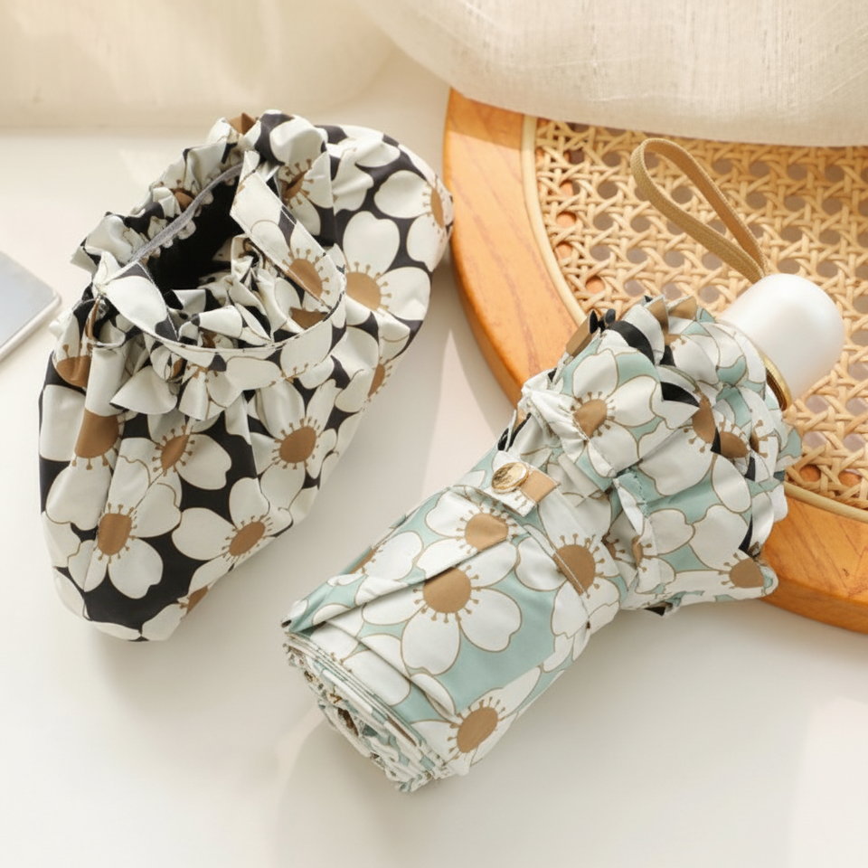 Mini parapluie de parasol de fleur portatif à 5 étapes Protection UV occultant couleur noire ultra-légère