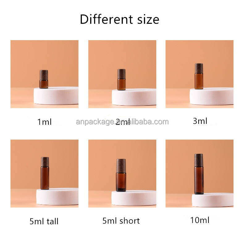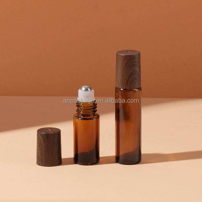 Nom du produit:Flacon roll-on en verre ambré avec bouchon imitation bois