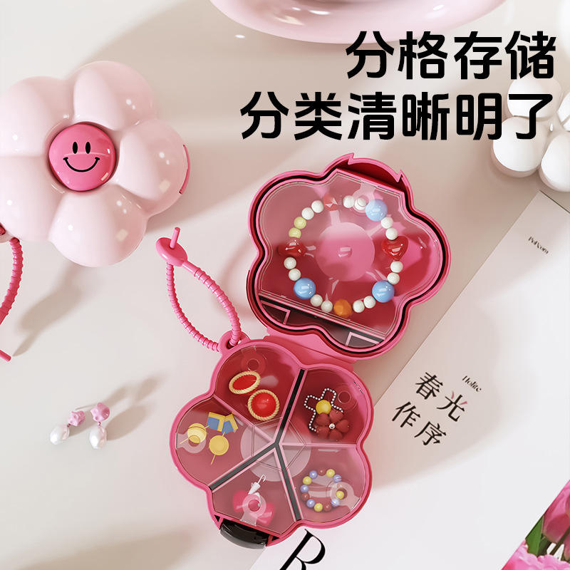 Mini Portable Flower Jewelry Box With Compartments For Earrings Necklaces Travel Storage Case Pink Rose Red Color