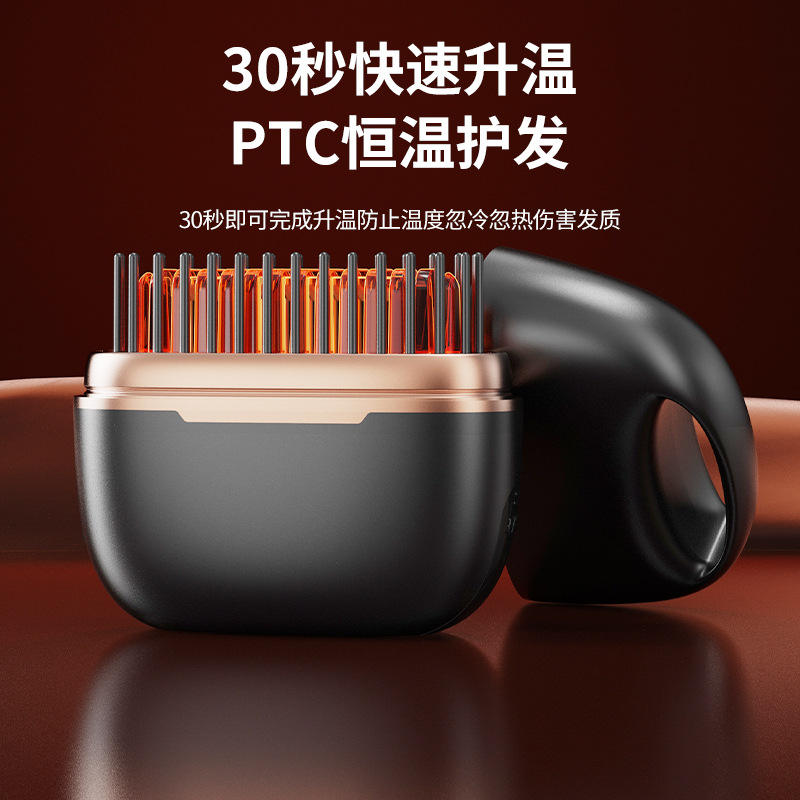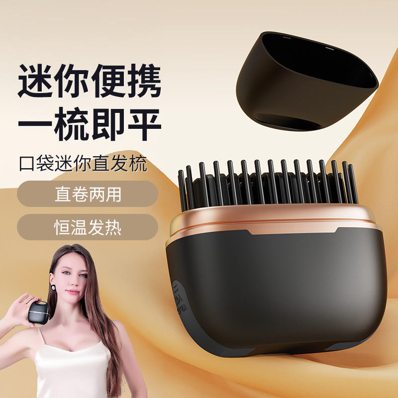 Mini peigne lisseur portable sans fil réutilisable à double usage pour lisser et boucler les cheveux avec chauffage à température constante