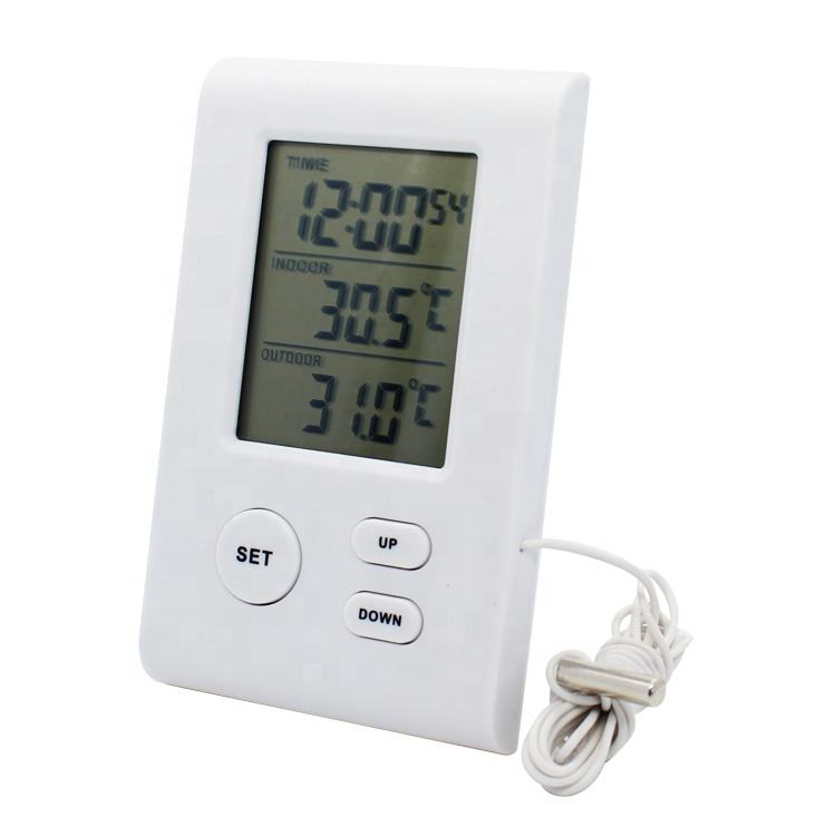 Nom:Thermomètre extérieur d'intérieur de câble avec la fonction d'horloge
