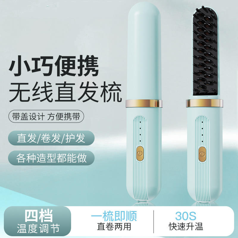 Mini peigne lissant portable rechargeable avec technologie d'ions négatifs pour tous types de cheveux, chauffage rapide, sans fil, au lithium