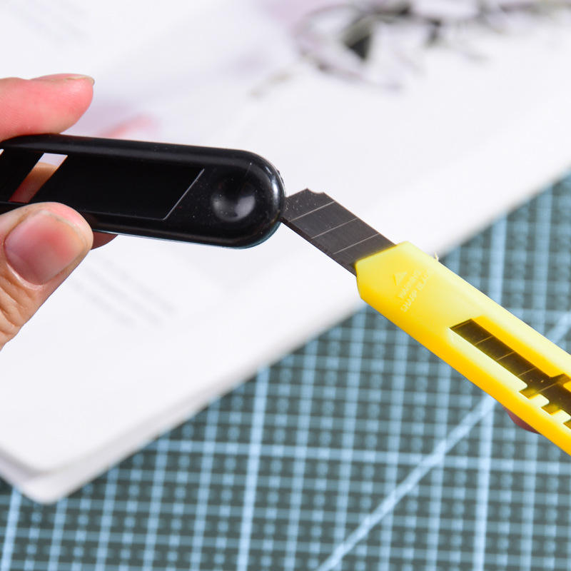 Mini couteau utilitaire portable, lame en acier inoxydable de 18 mm, manche en plastique jaune, pour couper le papier et le carton