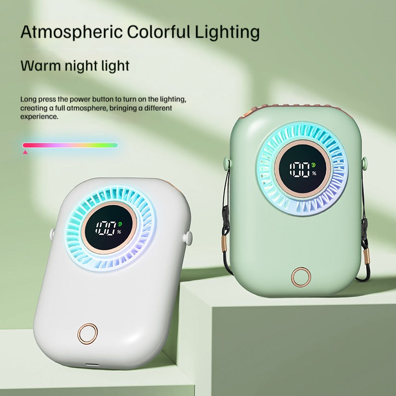 Mini ventilateur personnel rechargeable avec 5 vitesses de vent, lumière d'ambiance colorée et affichage de la puissance