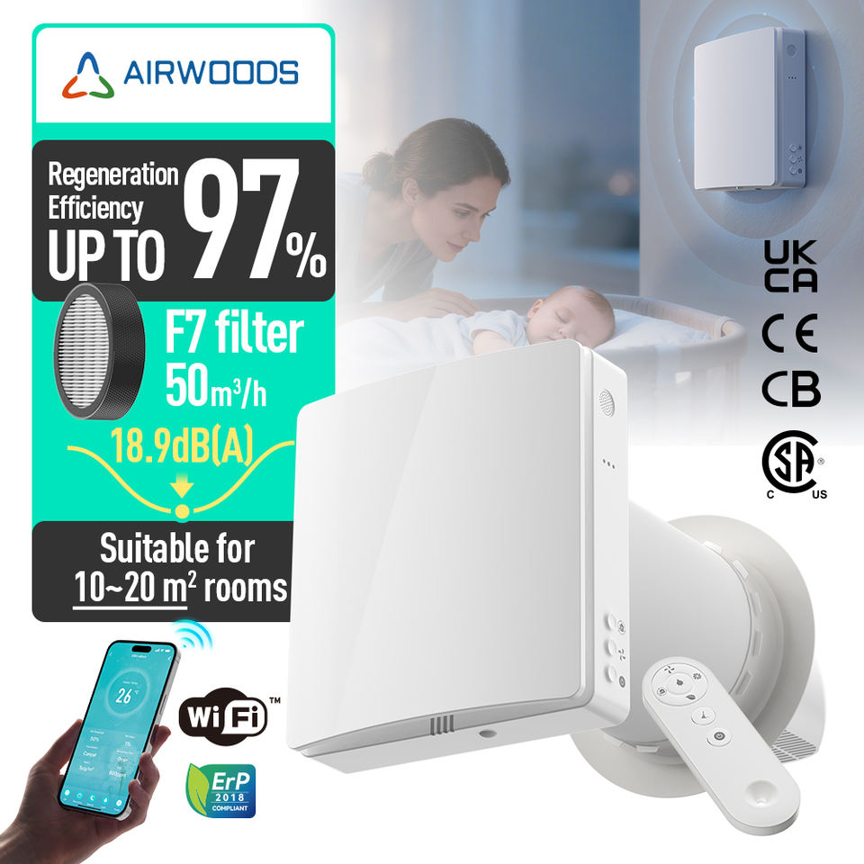 Mini récupérateur de chaleur à télécommande, ventilation à récupération de chaleur à haute efficacité, filtration d'air, HRV résidentiel, économie d'énergie