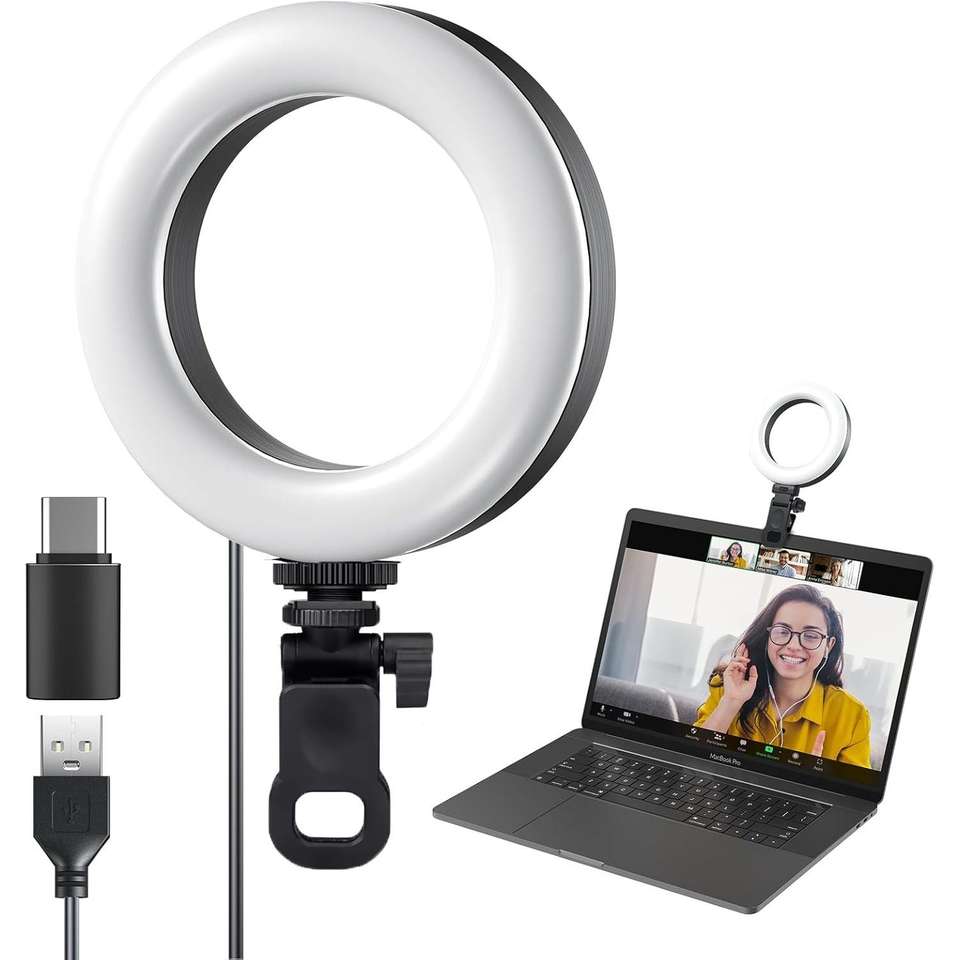 Mini flash annulaire de 6 pouces pour conférences vidéo informatiques Streaming en direct Éclairage photographique