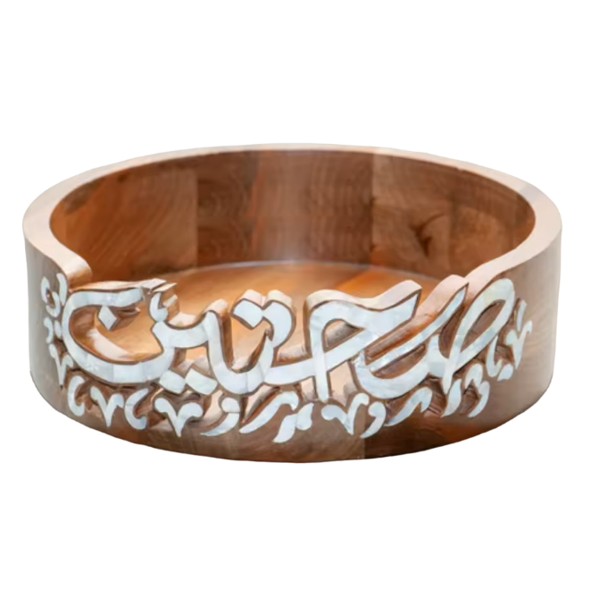 Nouvelle collection élégante de plateaux en bois de style arabe, plateau à gâteau en bois pour l'Aïd, fabriqué en Inde par Exotic Indian Art.