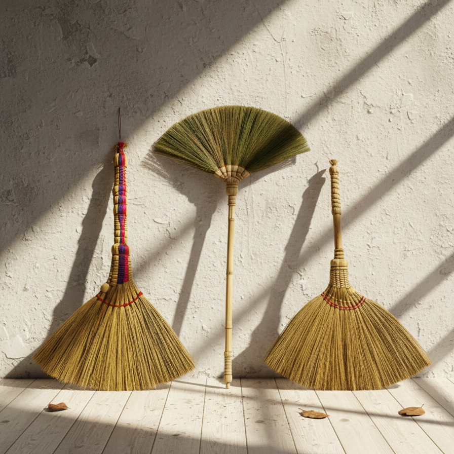 Mini balai à main en fibres de palmier avec manche en bambou, brosse de nettoyage naturelle faite à la main