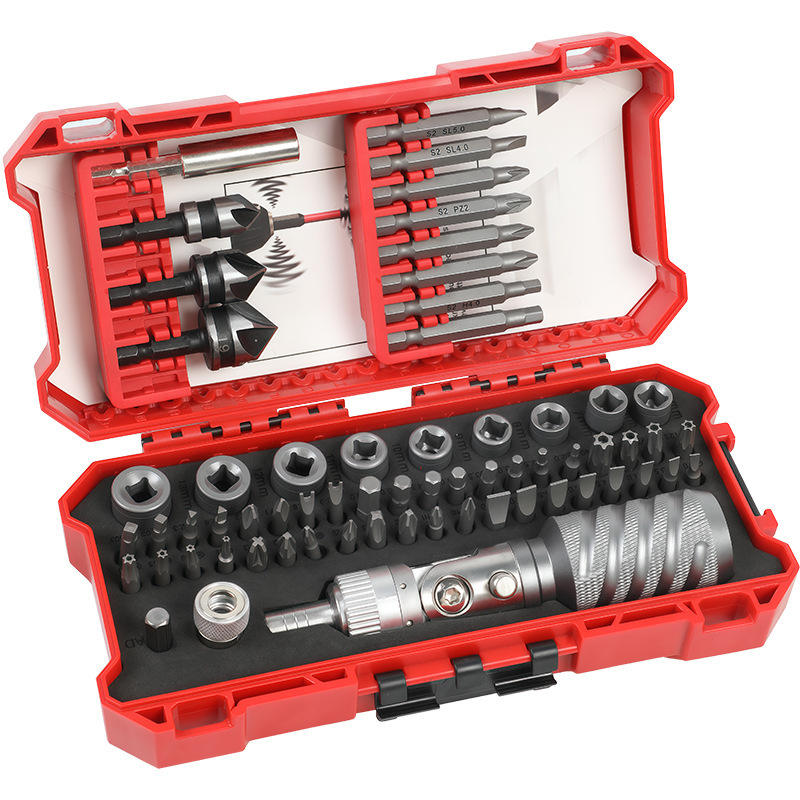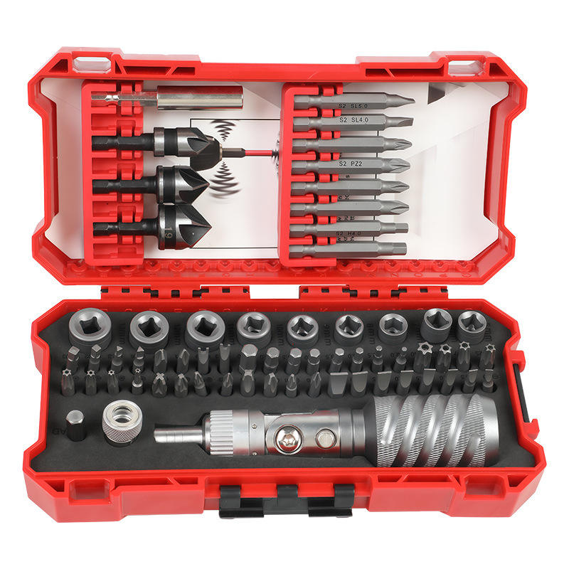 Ensemble de 57 pièces comprenant clé à cliquet, embouts de perçage et colle adhésive - TA023