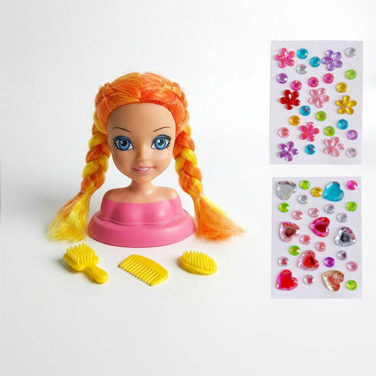 Nom du produit:Mini tête de coiffure avec autocollants décoratifs et mini ensemble brosse et peigne