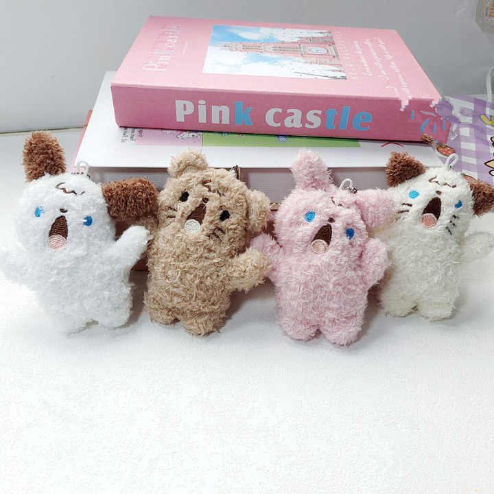 Mini taille broches en peluche Animal cri chien chat ours lapin Anime jouets en peluche pendentif porte-clés poupées broches cadeaux pour enfants sacs