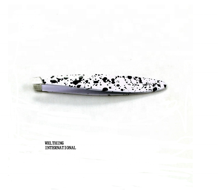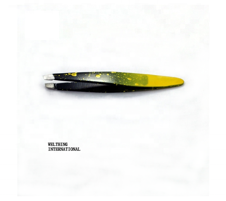 Mini pince à épiler pour sourcils en acier inoxydable à pointe inclinée, logo et emballage personnalisés