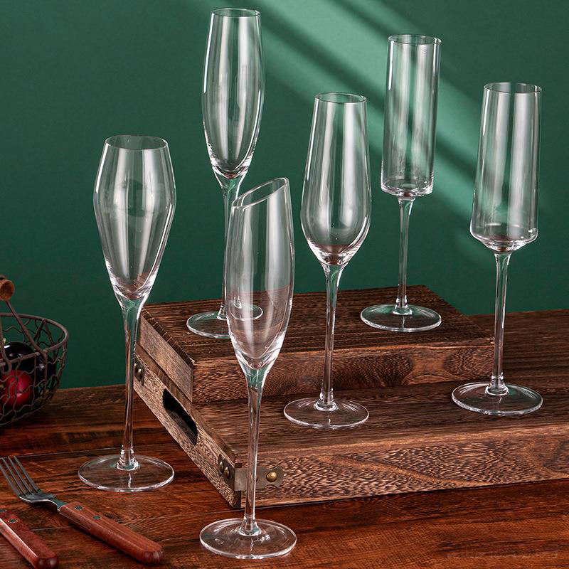 Mini petit géant Extra Large clair en vrac en gros flûtes à Champagne en verre pour mariage 6oz 9oz 12oz 200 verres à flûte mince oblique