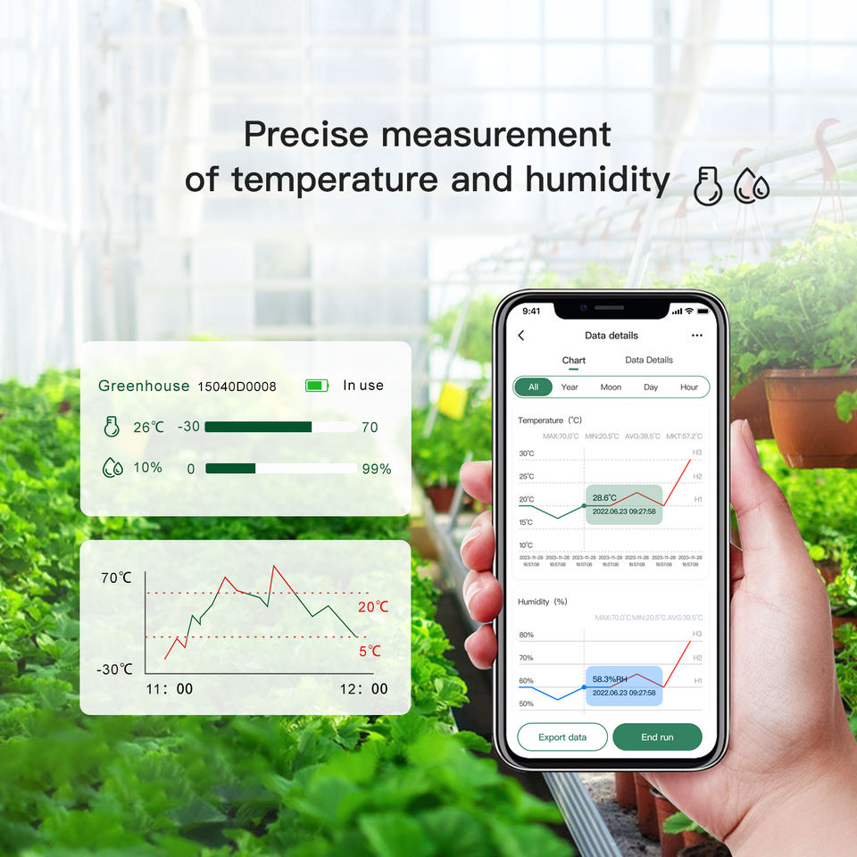 10pcs/50pcs par boîte, 1000pcs par carton Mini hygromètre thermomètre wifi intelligent avec enregistreurs de données app usb pour serre