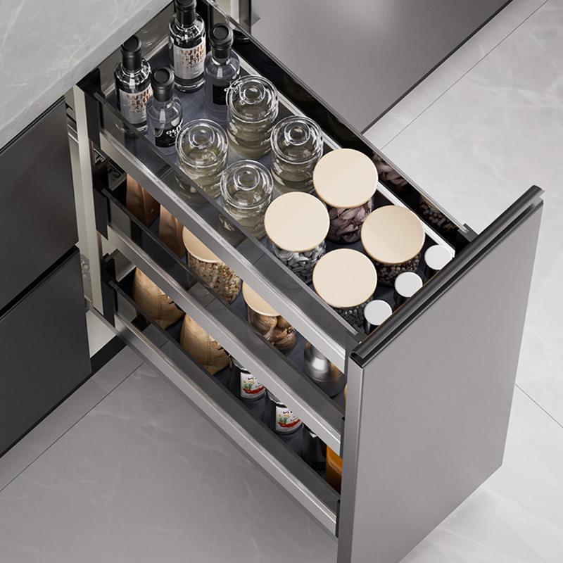 Mini panier à épices coulissant en verre pour armoire étroite, trois niveaux, en alliage d'aluminium, facile à nettoyer, organisateur de rangement de cuisine