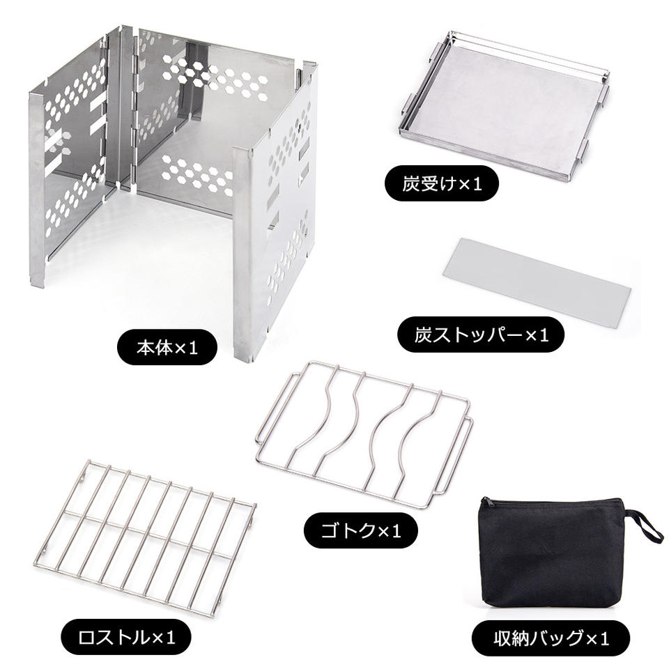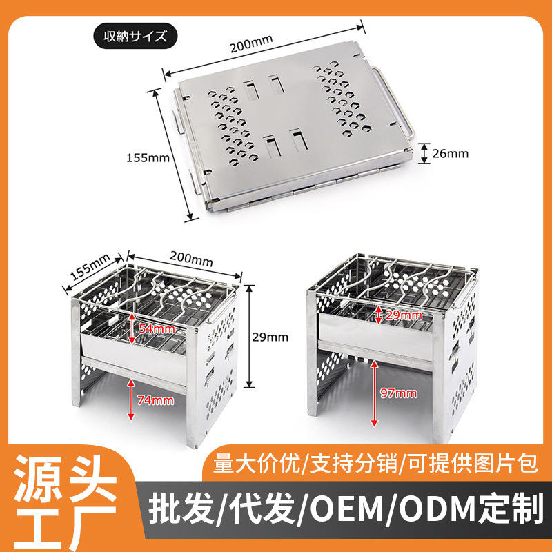 Mini barbecue carré en acier inoxydable, réchaud portable d'extérieur avec étui de transport, 19x18,5x15 cm, argent