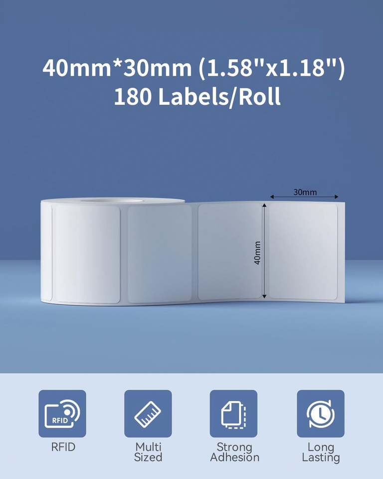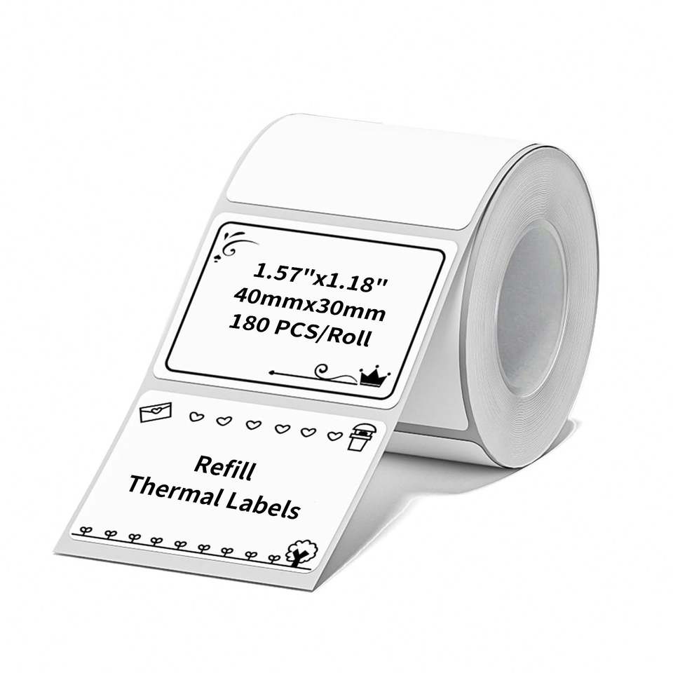 Mini-étiquettes autocollantes en papier thermique 40x30mm (1,58''x1,18'') blanches, imperméables et résistantes à la déchirure pour journal, notes et études
