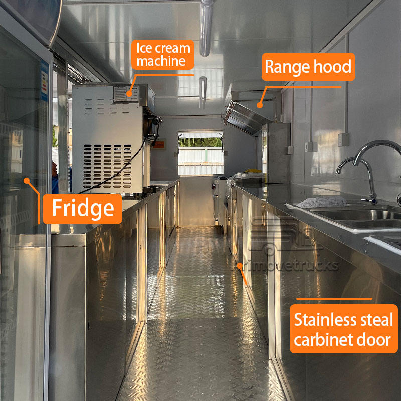 Autre équipement standard:* **Service window:** Guichet de service * **Stainless steel counter:** Comptoir en acier inoxydable * **Cabinet:** Armoire * **Cash drawer:** Tiroir-caisse