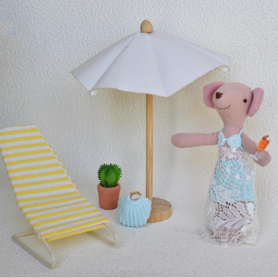 Mini parasol parapluie synthétique rotin canapé chaise longue ensemble 1:12 modèle Miniature Maileg Style plage vacances scène ensemble