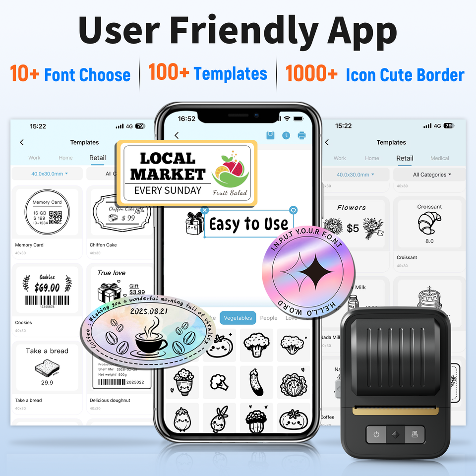 Mini Thermal Label Maker Machine 20-50mm Width in Black Color for Home Kitchen School Office Organization