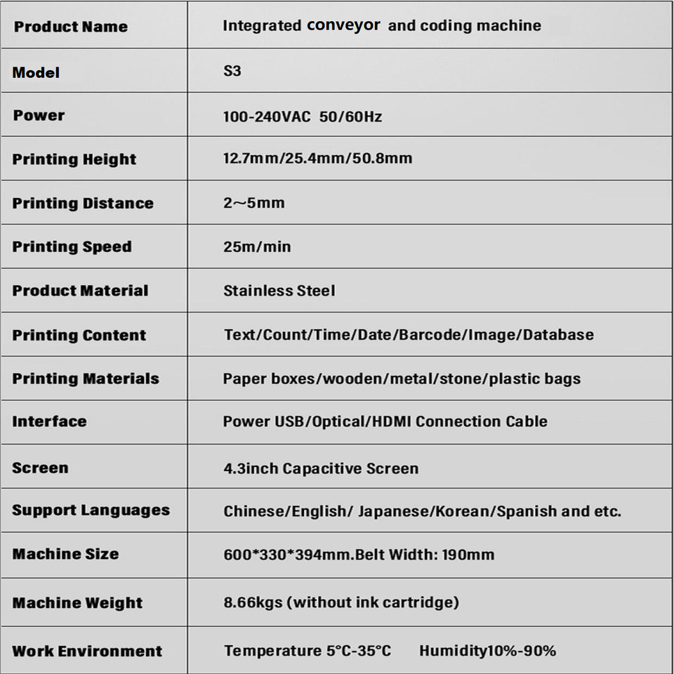 Nom du produit:Imprimante jet d'encre en ligne S3 avec tapis convoyeur
