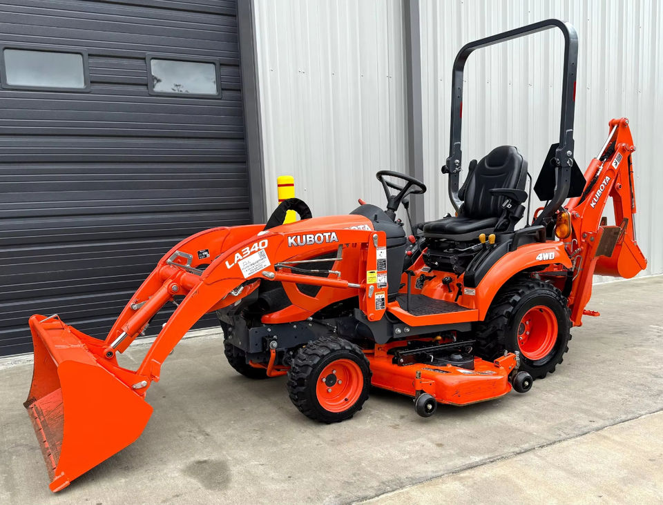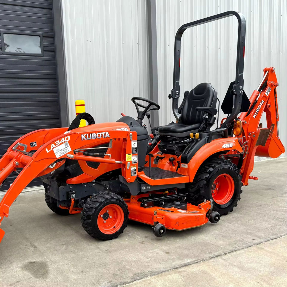 Mini-tracteur Kubota BX23S avec chargeur-pelleteuse intégré, godet à connexion rapide de type broche, prêt à l'exportation