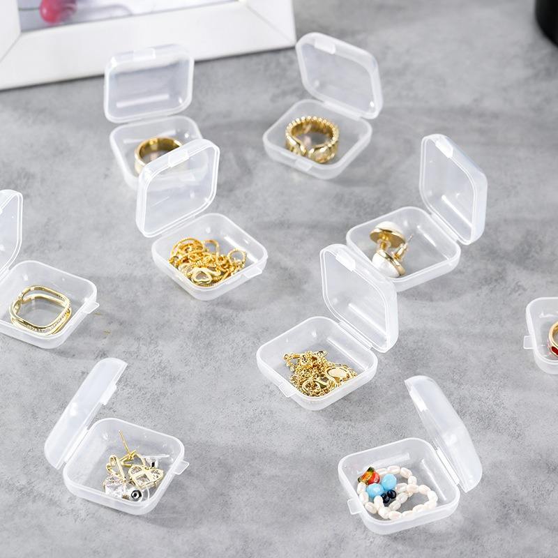 Mini boîte de rangement transparente pour bijoux, pour bagues, boucles d'oreilles, petit conteneur carré avec couvercle, étui d'organisation pour accessoires