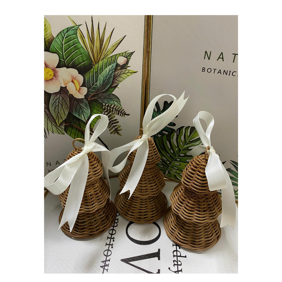 Mini arbre rotin cloche rotin ornements rotin naturel décorations de noël écologiques style vintage en gros à pour noël.