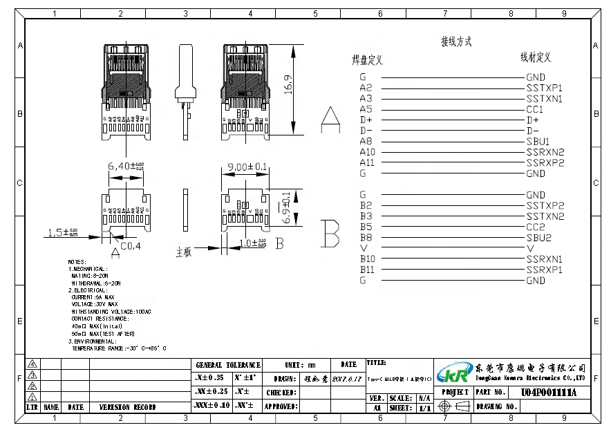 USB 3.1to Type C femelle mâle électronique Pin connecDescription