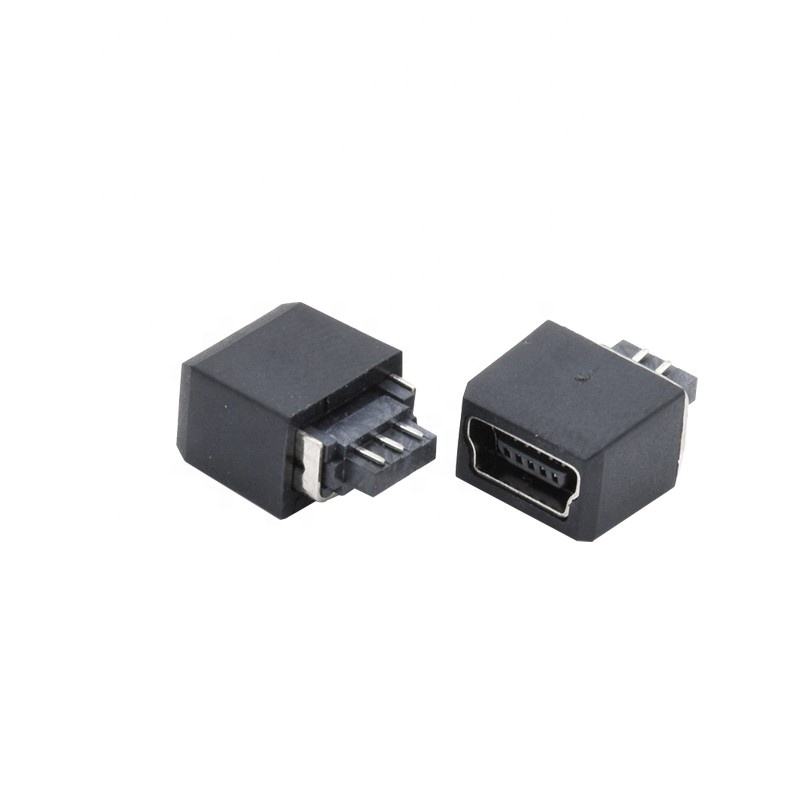 Connecteur USB Mini Type B 5 broches femelle, montage sur borne à souder, avec coque en plastique, 30V 1A