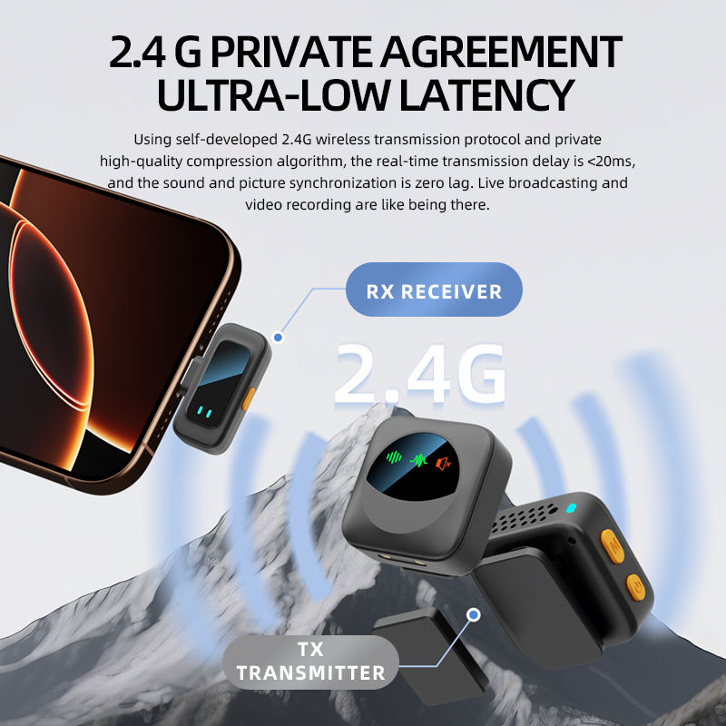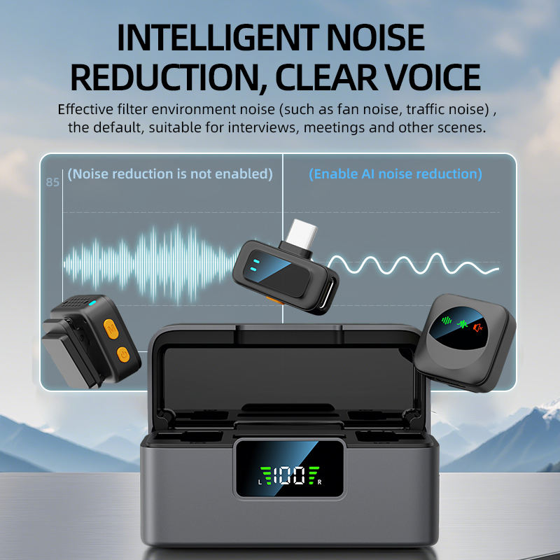 Mini microphone cravate sans fil avec suppression du bruit, kit de vlog à double micro pour les vloggers solo, enregistrement et diffusion en direct mobile